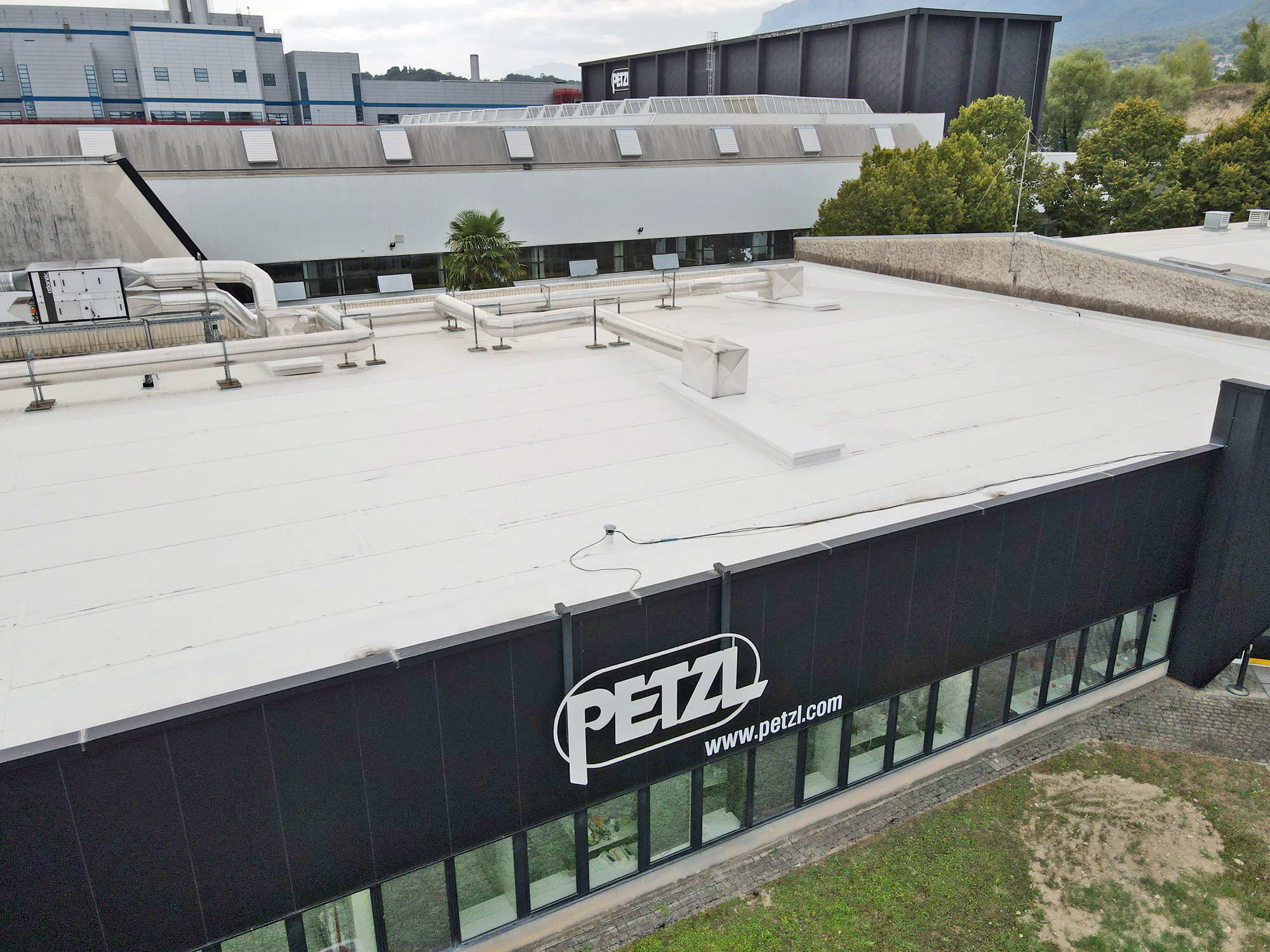 Cette réfection a été réalisée avec une membrane EVALON, membrane d’étanchéité de toiture thermoplastique, à haute concentration en polymères EVA et renforcée mécaniquement en sous-face par un non-tissé de polyester.