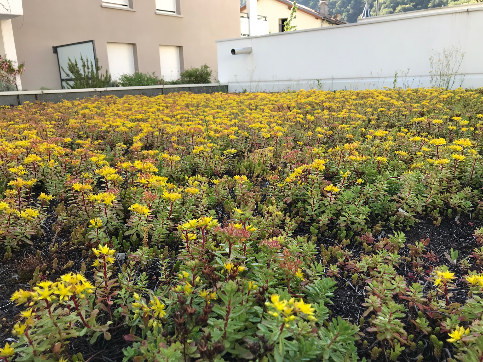 - Extensif : faible charge, sedums et mousses, peu d’entretien. Idéal pour les grandes surfaces techniques ou non accessibles.
