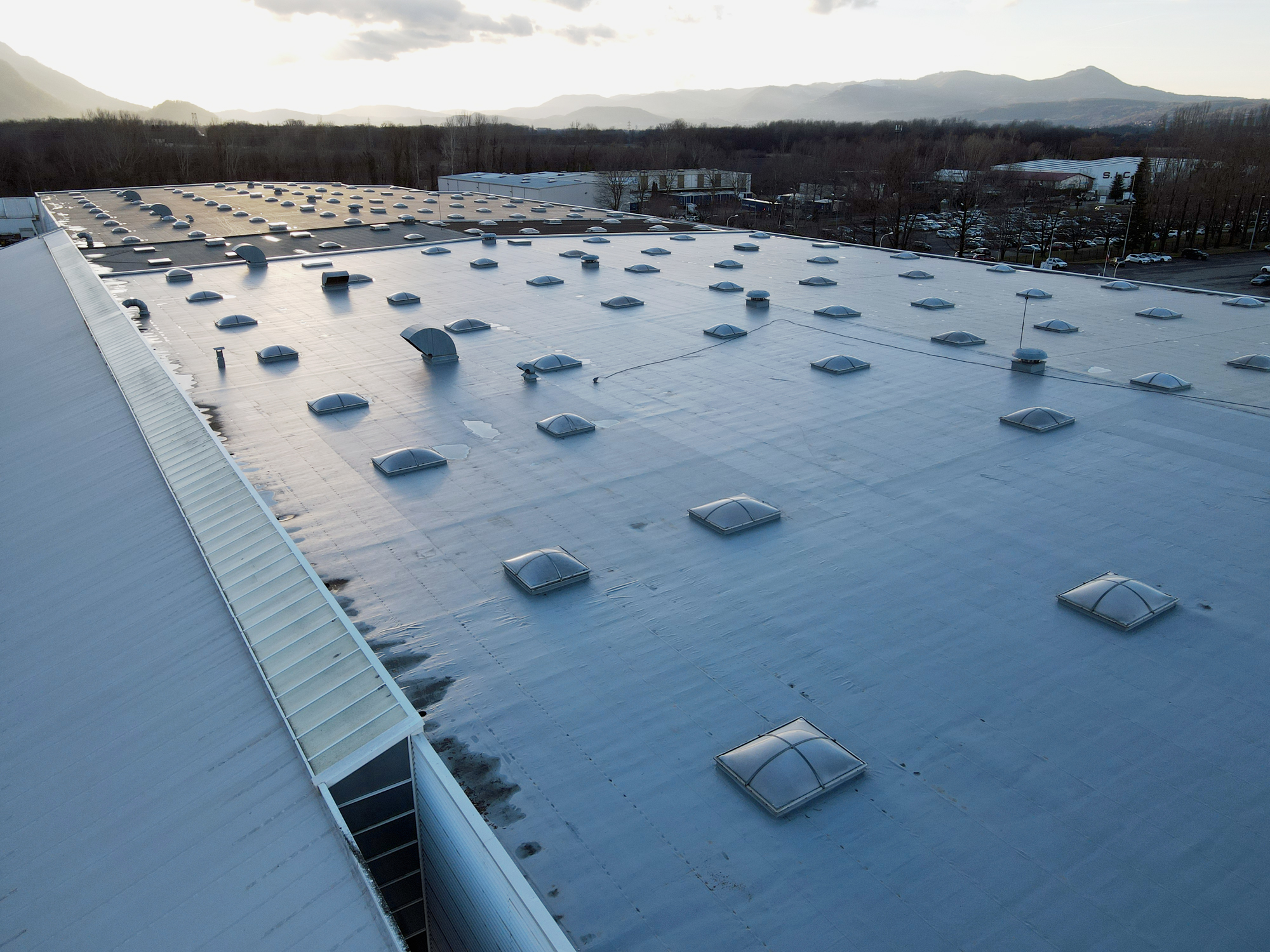 Réfection d'un bâtiment industriel de 24 000 m² à Voreppe avec arrachage complet du complexe isolant + étanchéités