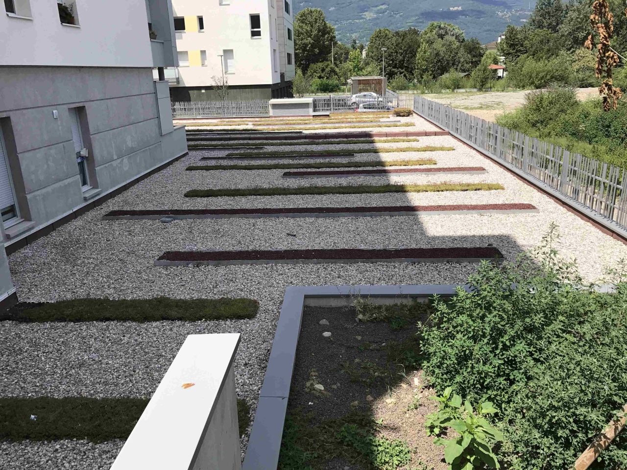 Toutes nos installations sont réalisées avec une membrane anti-racines certifiée, et un système de drainage conforme aux recommandations professionnelles (FLL, DTU…). écologique”, mais une réelle stratégie d’aménagement durable.